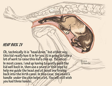 If you can; have someone hold the doe in place who can keep her calm and talk to her if you have to work at her if you have no help may need to tie her to something to restrict her movement.. When going in you must ensure your hands are spotlessly clean and well lubricated, always move slowly and steadily and stay calm.